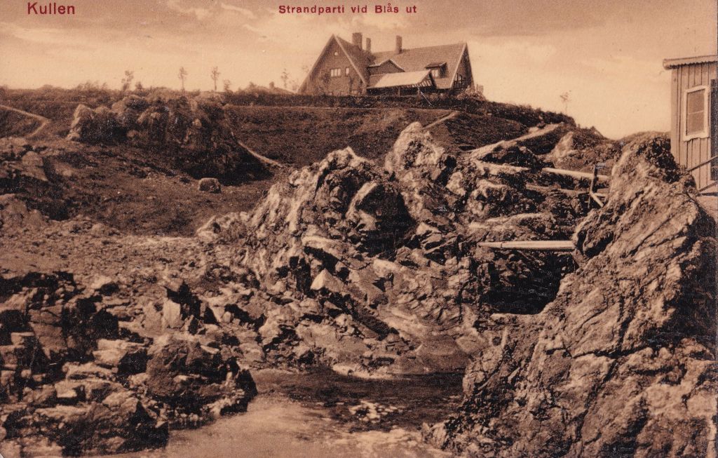 Ett av vädrets makter sannolikt utsatt badhus ses på vykortet nedan. Badhuset bör vara det som byggdes av Jonathan Olsson, som ägde Balderups herrgård (Ramsay Nelson, Kullabygd). Fotografiet bör vara taget från dagens ”Tussans badplats”.