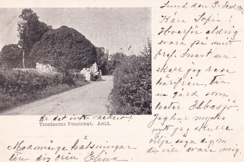 Det finns förhållandevis få vykortsmotiv från Arild som är stämplade 1900 eller 1901, innan vykortshysterin tog fart på riktigt några år senare. Något kort stämplat före 1900 har jag ännu inte hittat.