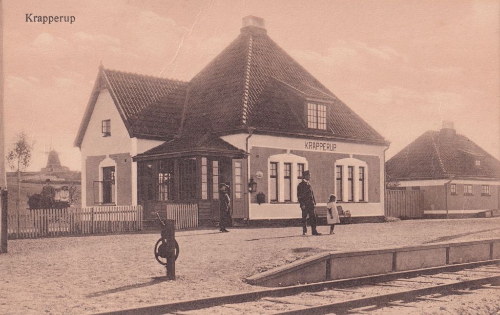 Efter Nyhamnsläge var nästa station Krapperup. Stationen ligger i utkanten av byn Lerhamn och fram till förhållandevis sent i planeringsprocessen var tanken att stationen skulle heta Lerhamns station. Krapperup som ligger en liten bit från Lerhamn är ett slott som ägs av släkten Gyllenstierna (numer genom Gyllenstiernska Krapperupstiftelsen). Krapperup gods var med som finansiär av tågbanan och Nils Gyllenstierna var en viktig person i att banan kom till. Att stationen namngavs efter godset hade därmed sin förklaring.