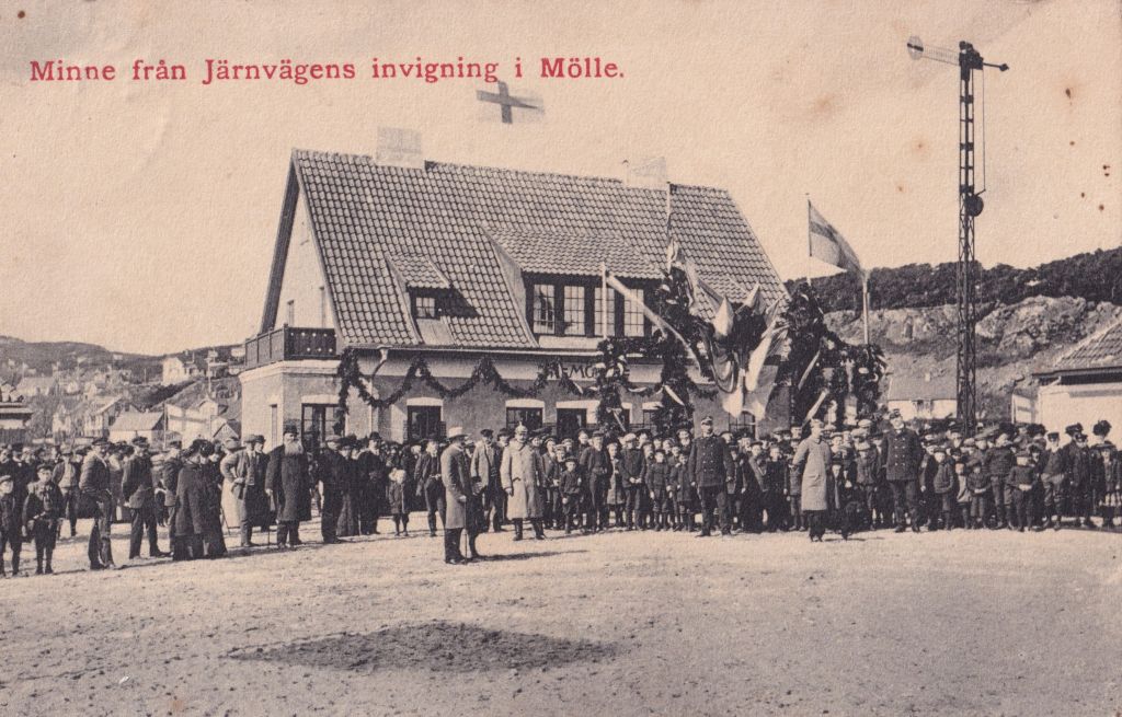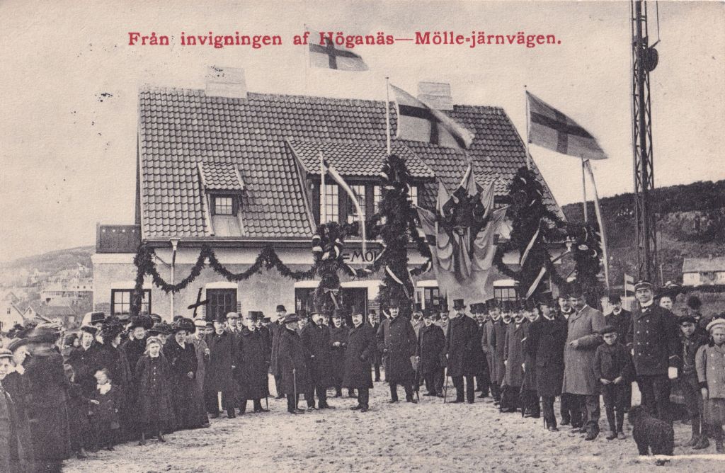 De finaste vykorten tycker jag dock är de som visar järnvägens invigning i Mölle. Det nedersta kortet är skickat bara några veckor efter öppnandet.