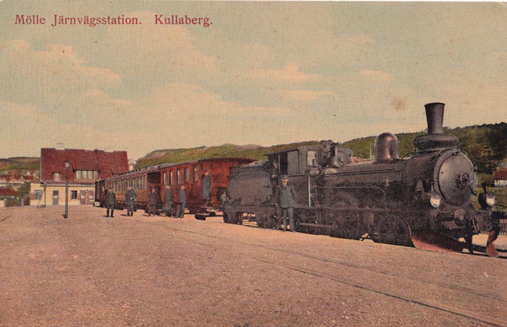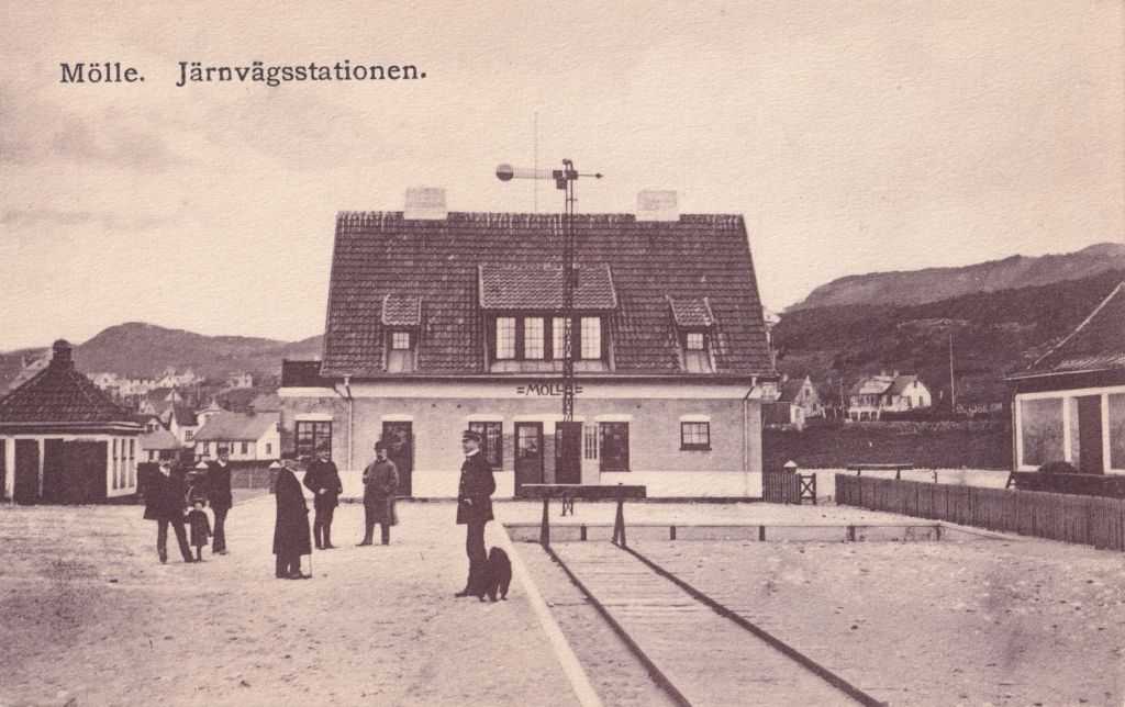 Sista stationen på sträckan var Mölle. Det finns flera vykort som visar stationen vid den tid banan öppnade och jag har tagit med några av dem nedan.