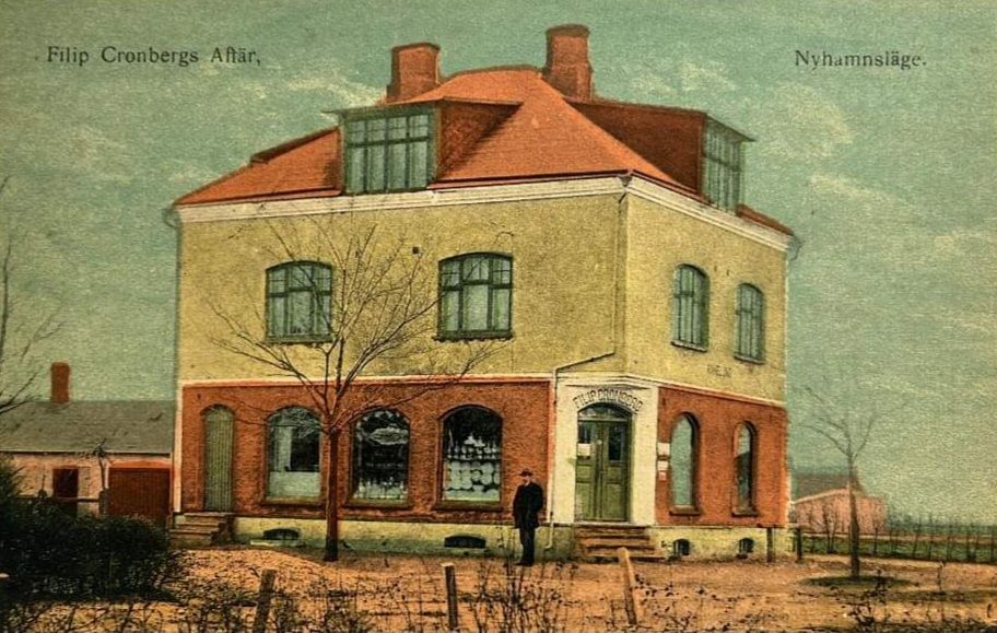 År 1910 byggde Brunnbybon Jöns Andersson en affärsfastighet i Nyhamnsläge, samma år som järnvägen Höganäs–Mölle och stationen i Nyhamnsläge invigdes. Redan 1914 såldes dock affärsverksamheten till Filip Cronberg, som drev affären fram till 1949.