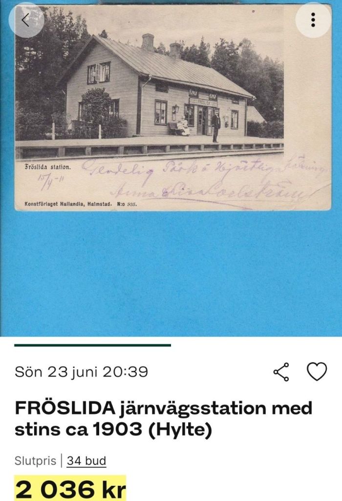 Ännu en järnvägsstation. Denna gång Fröslida järnvägsstation i Hylte kommun. Två budgivare ville båda gärna ha kortet.