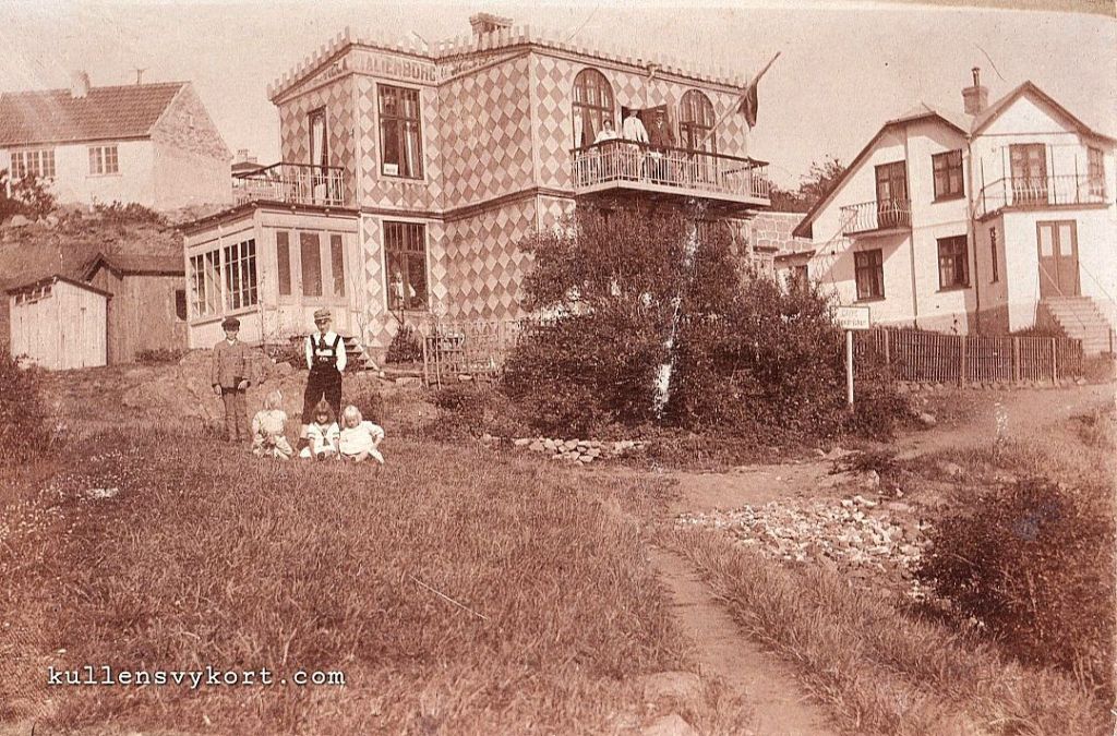 Familjen Berggren drev både kaféverksamhet i trädgården och hyrde ut rum på ovanvåningen. Det var Emilia som skötte om verksamheten. Vykortet nedan är ett s.k. fotovykort som är tryckt i liten upplaga. Det finns ingen angiven fotograf, men det kan vara någon av de kända Möllefotograferna. På skylten utanför huset står det ”Caffe Läskdrycker” som reklam för kaféet.