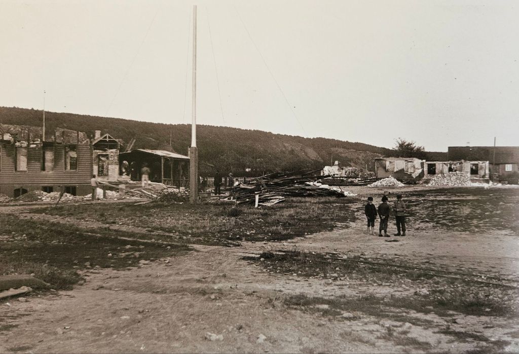 På fotografiet nedan ses till vänster Axel och Gustafva Anderssons nerbrunna hus.
