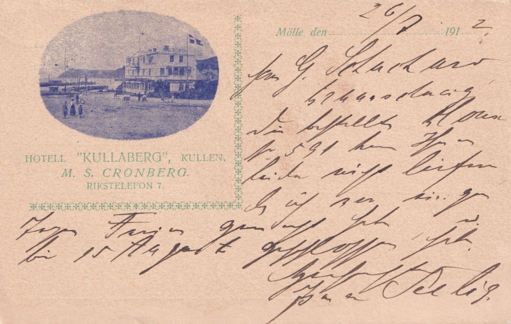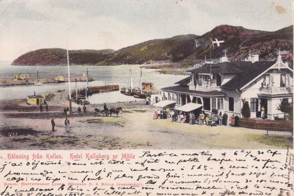 Det finns flera tidiga vykort av Hotell Kullaberg som det såg ut efter återuppbyggnaden. Vykortet nedan är skickat augusti 1898 och fotografiet är taget av Peter P. Lundh. Det är bland de tidigaste vykorten som finns från Mölle (se https://kullensvykort.com/2024/04/02/de-tidigaste-vykorten-fran-molle/).