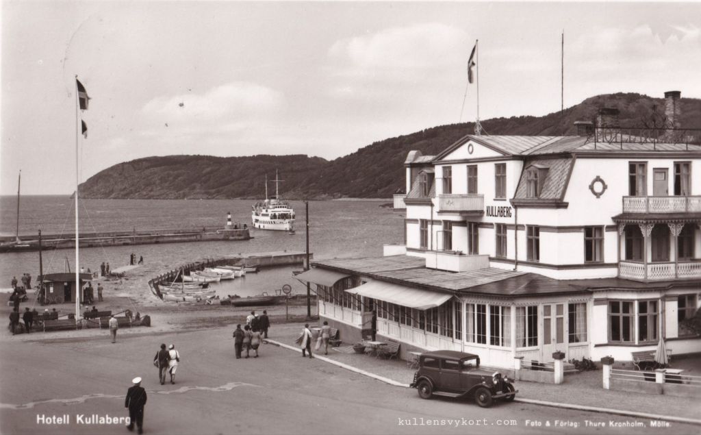 På vykortet nedan ses utsikten från Hotell Korfitzon med Hotell Kullaberg till höger.