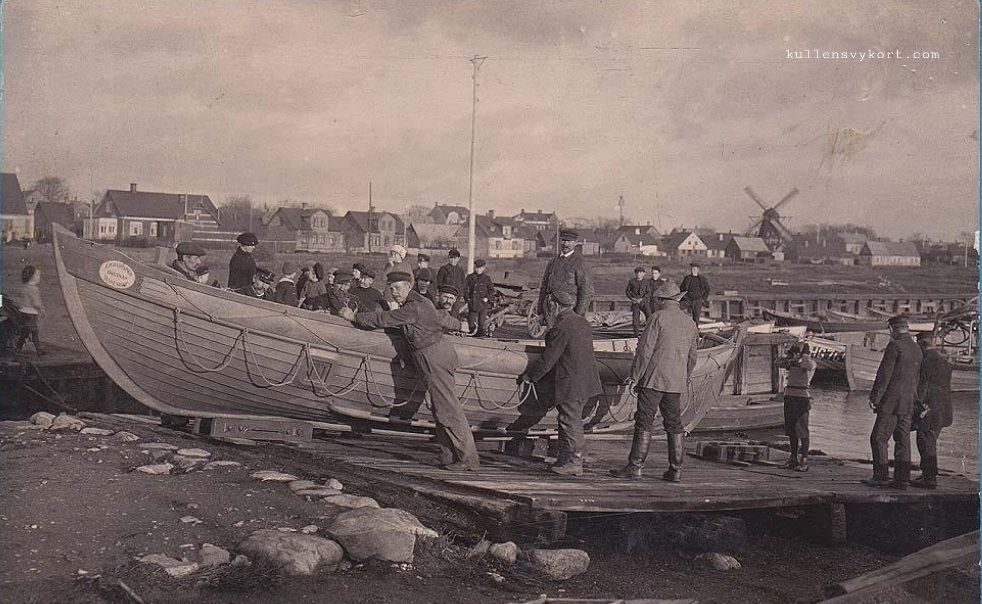 Fotovykortet nedan av Arthur Rube visar sjösättningen av livräddningsbåten i Höganäs. Det gjordes regelbundna räddningsövningar med båtarna.