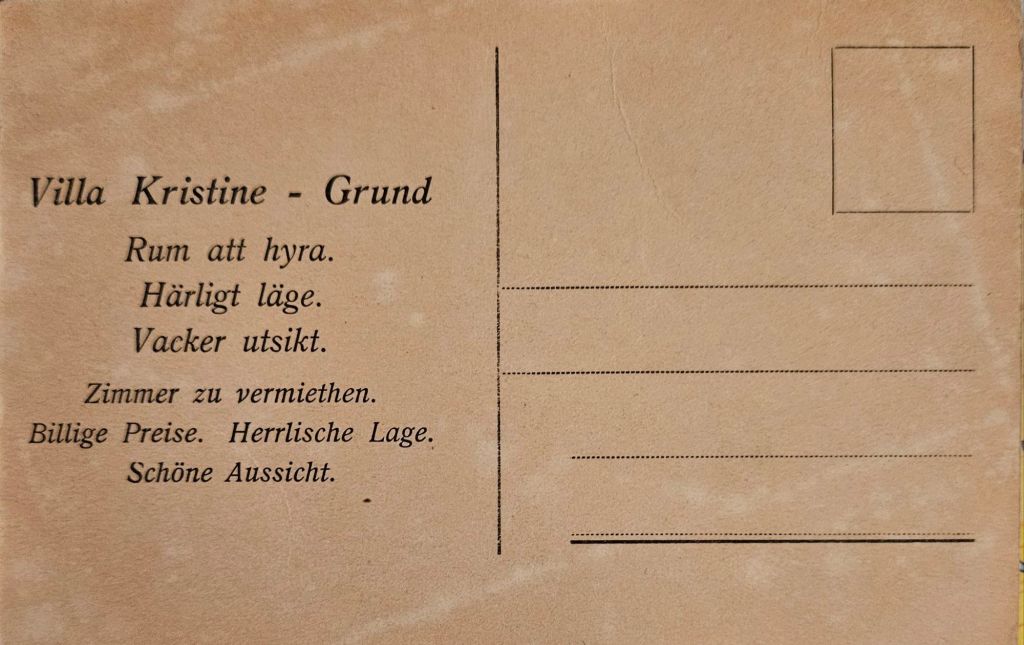 På baksidan av vykortet ovan finns reklam för uthyrningen av rum. Det är därmed sannolikt att Emma och Nils beställt vykortet för verksamheten.