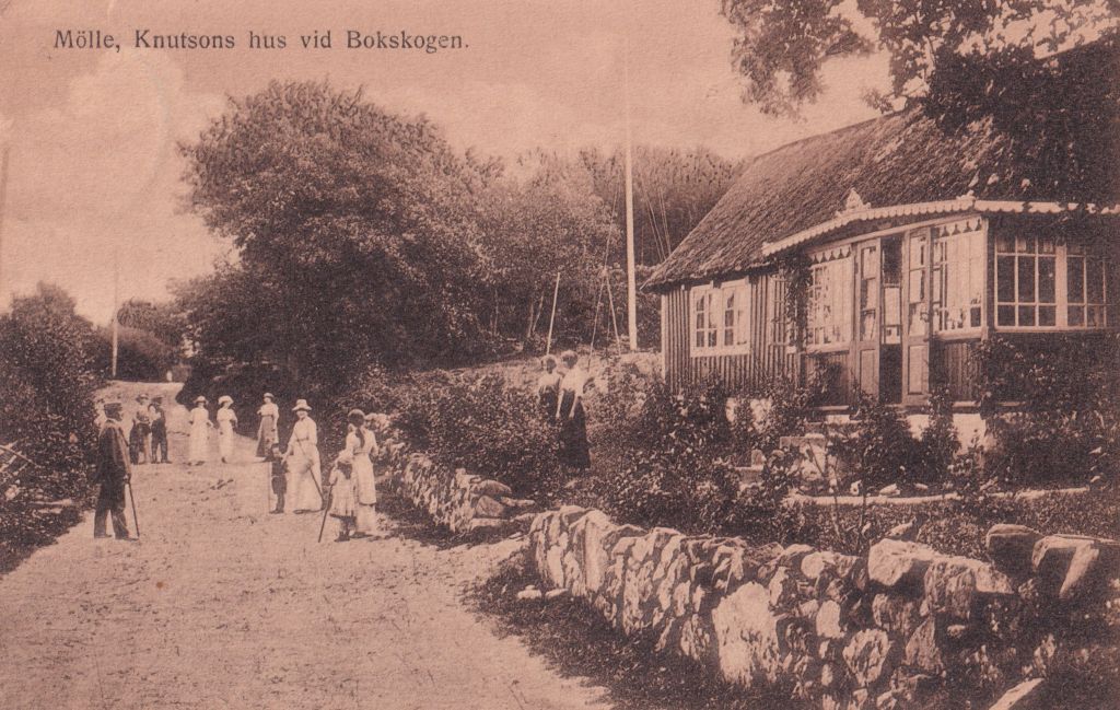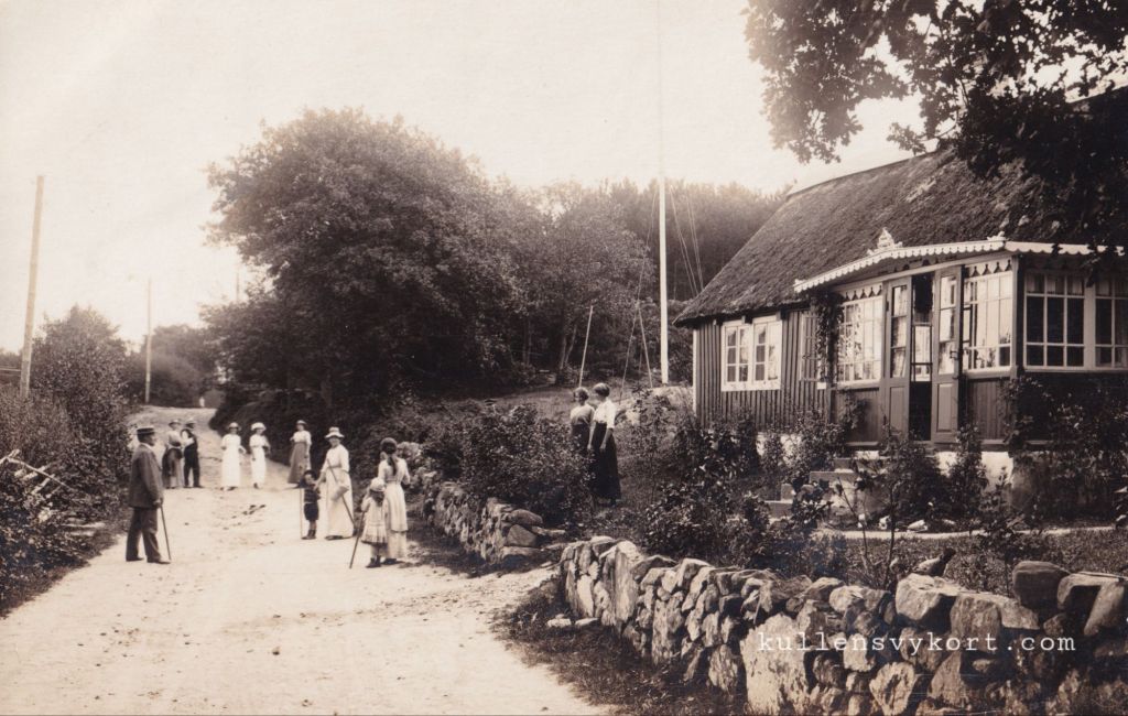 Familjen Knutsson hade vid denna tid öppnat kafé i trädgården för att dra nytta av turistströmmarna. På den lilla skylten vid ingången till tomten på kortet ovan står det ”Servering af kaffe, te, läskdrycker. Rum att hyra. Båt kring berget” (Appelros & Kullenberg).