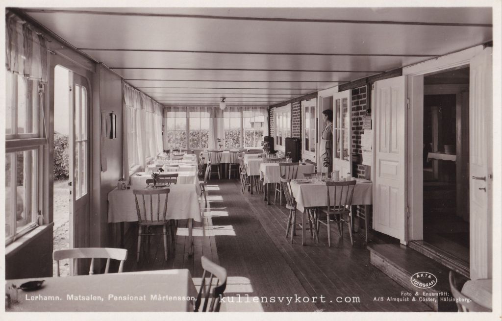 Vykortet nedan visar inredningen i hotellets matsalsveranda, i det ursprungliga huset. Enligt Björn Jacobsons bok kan bilden vara från omkring 1925 (då verandan byggdes). Det verkar dock sannolikt att detta vykort är samtida med de övriga vykorten från förlaget Almquist & Cöster, vilket talar för att det är från 1940-talet.