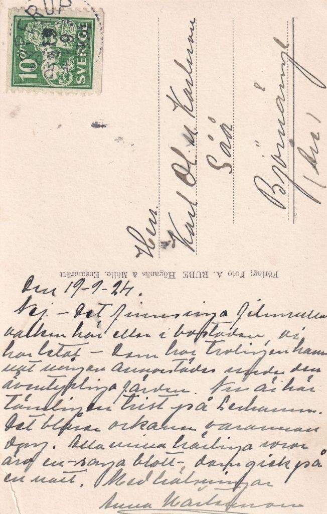 Vykortet ovan har skickats av Anna Mårtensson själv till en gäst som verkar leta efter filmrullar.