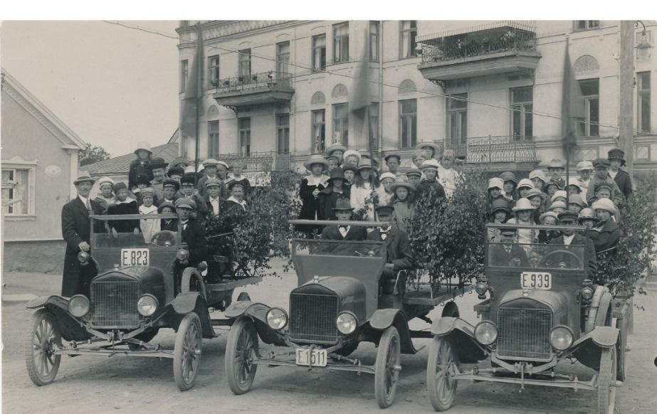 Fotografiska vykort med fina motiv går ofta för höga priser. Detta fantastiska kort från Kisa med bilar såldes för 975 kr.