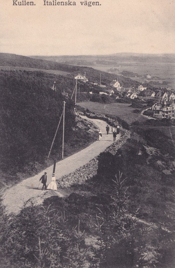 I ett tidigare inlägg finns vykort och information om Hjortstugan som också ligger längs Italienska vägen: https://kullensvykort.com/2024/11/29/hjortstugan-jonssons-knutssons-hus-pa-kullaberg/