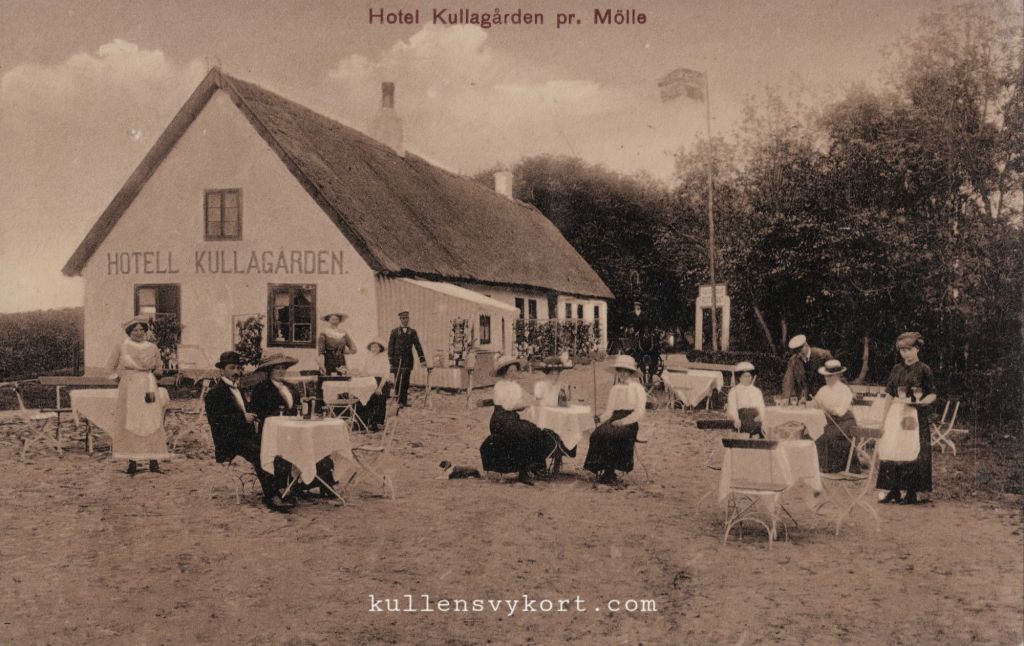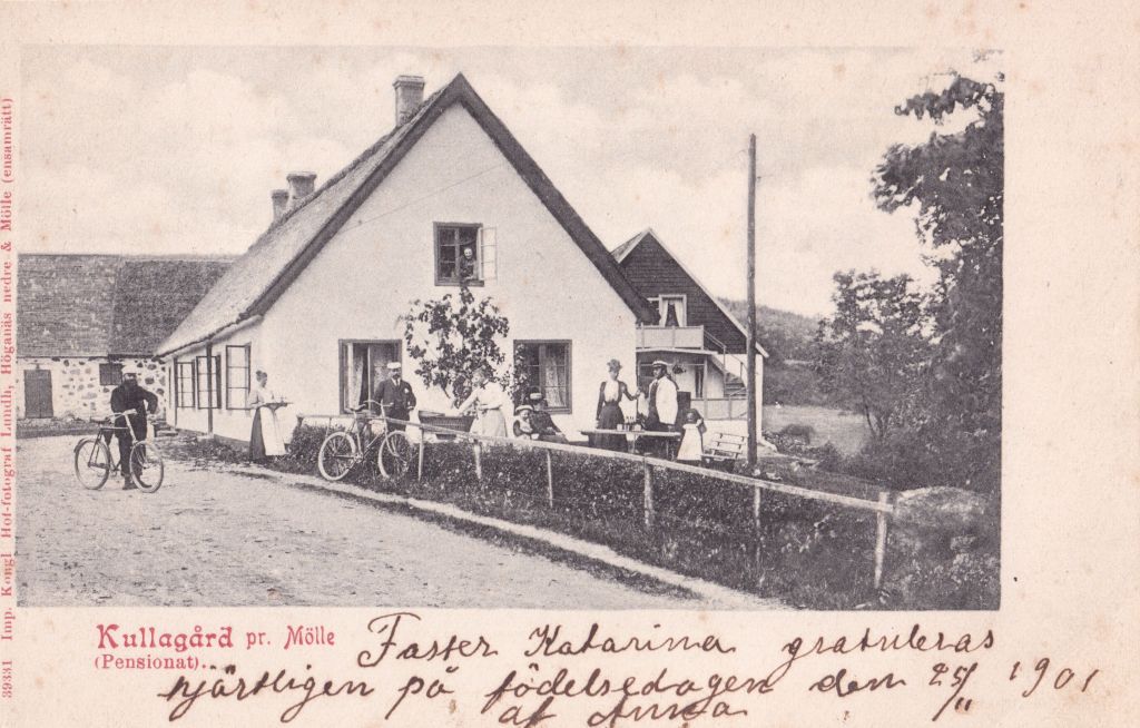 Vykortet nedan visar gamla Kullagården. I dörren står Henriette redo att ta emot gäster. Vykortet är skickat juli 1898, vilket är mycket tidigt för vykort från Kullen.