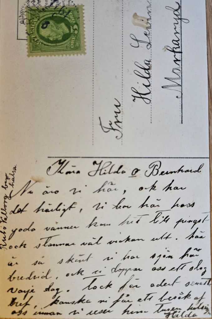 På vykortet nedan ses huset till vänster. Vykortet är skrivet februari 1903 och kan därmed tänkas vara tryckt 1902. Lägg märke till att en person står i dörren. Det är mycket möjligt att det är Mathilda Olsson.