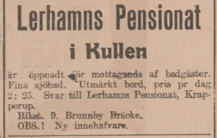 Av tidningsurklippet nedan framgår att pensionatet 1911 fick en ny innehavare.