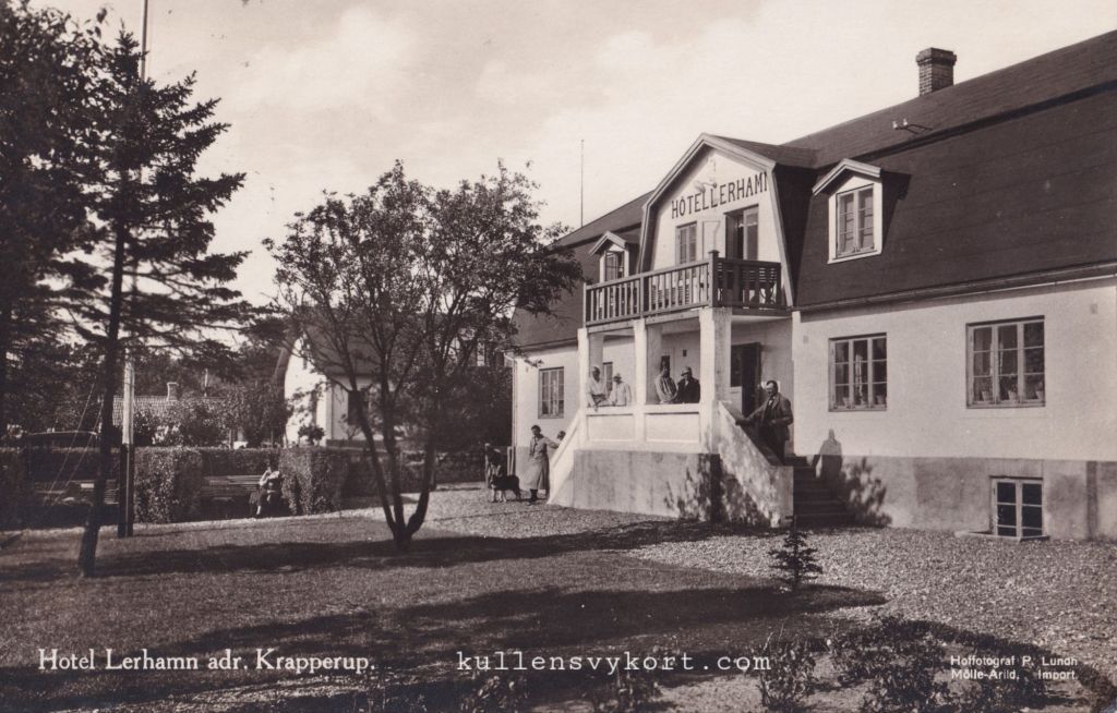 Den 1 maj 1910 invigdes den s.k. Möllebanan mellan Höganäs och Mölle. En av stationerna på banan placerades i Lerhamn, även om stationen fick namnet Krapperup. Den nya tågbanan gjorde Lerhamn till en betydligt mer attraktiv turistort. I detta inlägg berättas mer om Möllebanan: https://kullensvykort.com/2024/04/23/vykort-fran-byggandet-och-oppnandet-av-hoganas-molle-jarnvag/
