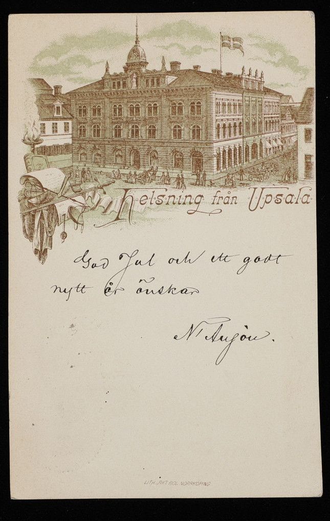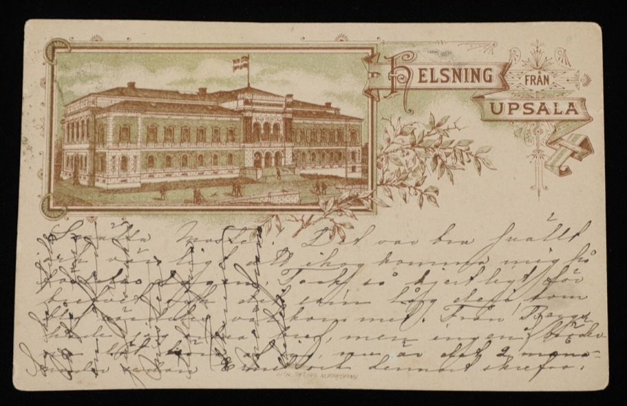 Bland de mest spännande korten på auktionen var flera exemplar av de tre ”Helsning från Upsala”-kort som var de första topografiska vykorten som gavs ut i Sverige. De togs fram till invigningsdagen av det nya universitetshuset 17 maj 1887. Två av korten visar universitetet och det tredje Uppsala slott med omgivningar.