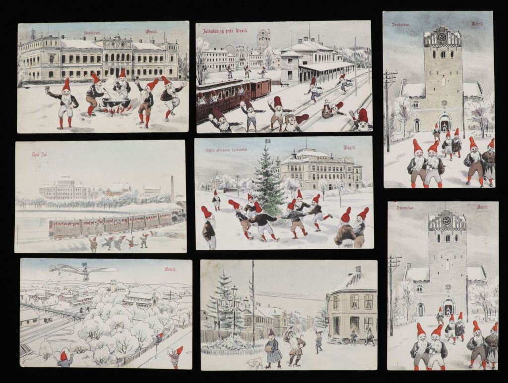 Åtta tomtevykort från Växjö gick för 5 700 kr, mer än 700 kr per kort. Efterfrågan är stor även internationellt, med bland annat en fin finsk samling. Men ändå mycket högt betalt för ett parti!