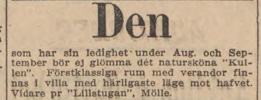 Faktauppgifterna i det här inlägget kommer, i de delar som inte hämtats från dåtidens dagspress, från boken Här ha vi det ljufveligt. Hotell och pensionat i Mölle och Arild genom alla tider (2012) av Erik Magnusson & Fredéric Täckström.