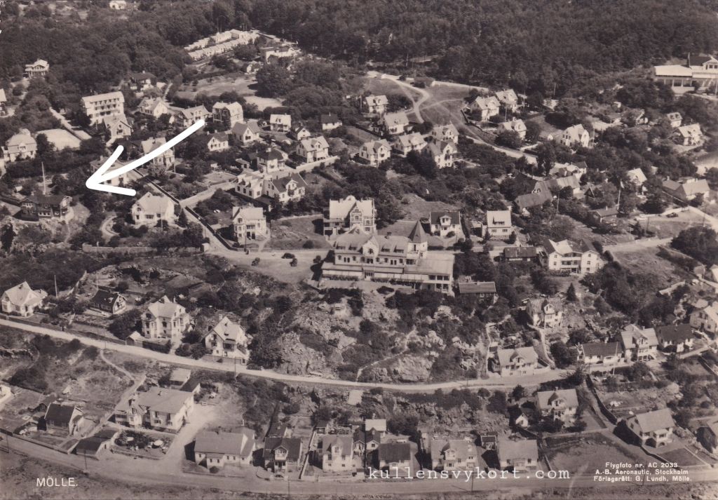 Villan brann sedan upp i en storbrand 1953. På flygfotot nedan finns en pil som visar var villan låg.