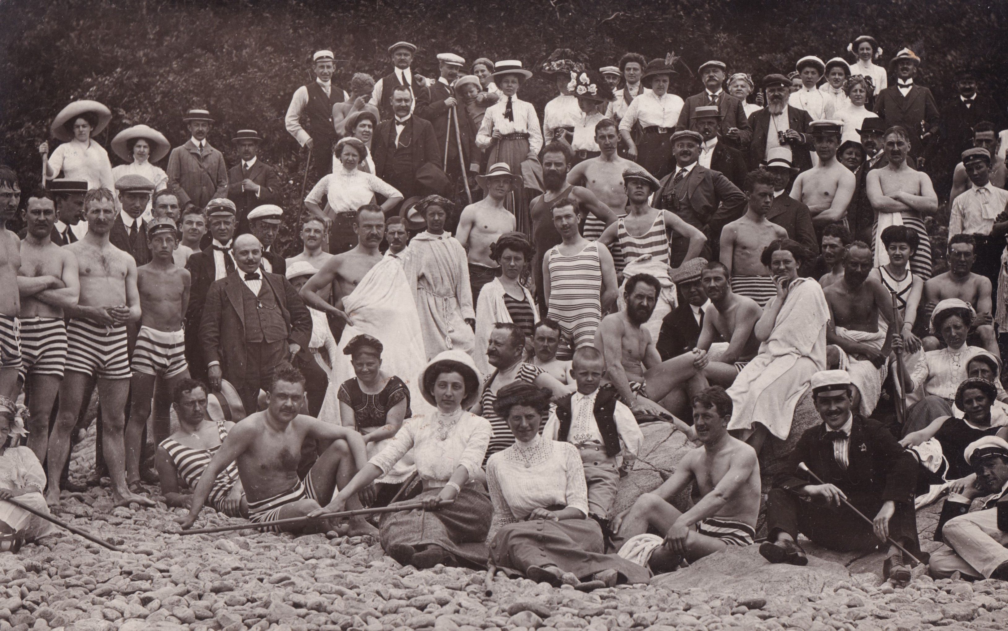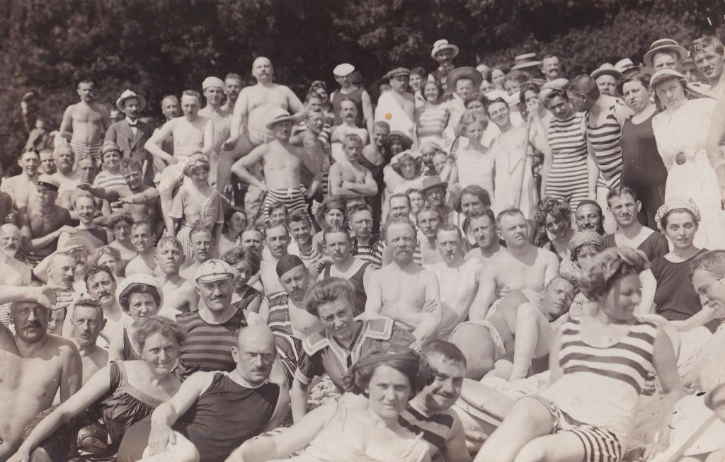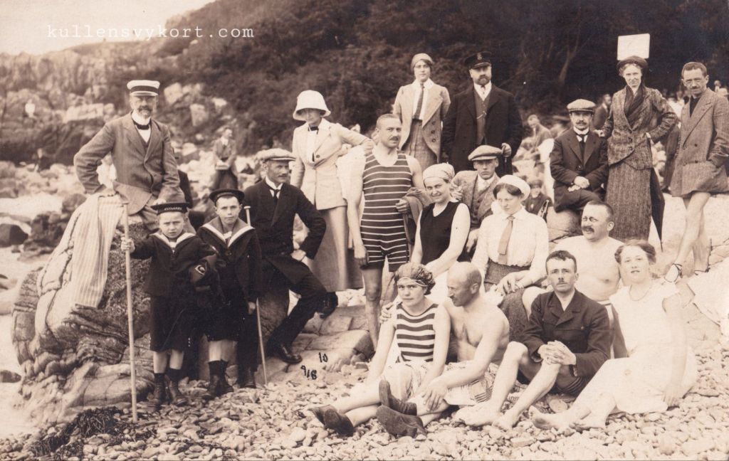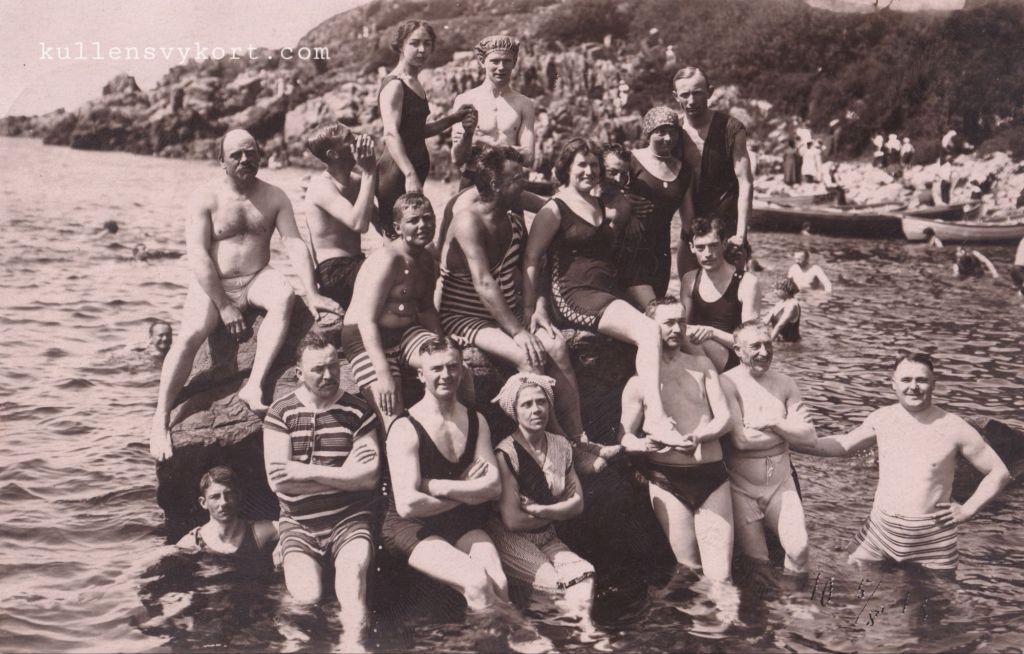Många av de här fotografierna blev ganska udda när män i hög hatt och kvinnor i långklänning blandades med badare i badkläder. I många fall var det fler som tittade på badarna, än som själva badade.