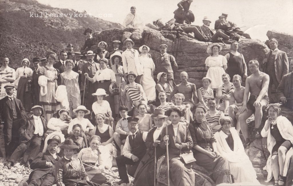 Väl uppe på land var det dock många som bytte om till ordentliga kläder. Nedan finklätt folk på ett kolorerat vykort.