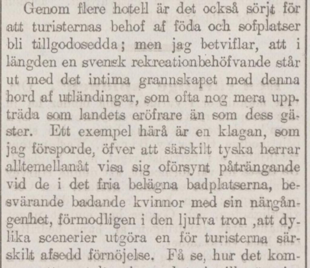 Gyllenstiernas regler tas upp i två artiklar i Dagens nyheter sommaren 1910. I en artikel från juni kommenteras de nya reglerna med att opinionen hos badgästerna är emot dem. I en artikel från augusti konstateras att föreskrifterna inte följts och att det förstås är svårt att upprätthålla regler för turister på tillfälligt besök. Ännu mer intressant är artikelns ifrågasättande om gemensamhetsbadet verkligen är något att uppröra sig över. Som vanligt vill man också poängtera att det är utlänningar (dvs. danskar och tyskar) som står för badandet.
