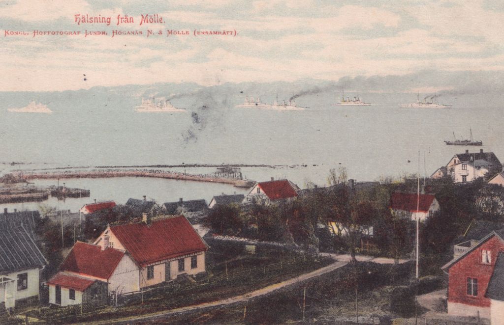 Dagen efter att fartygen ankrat utanför Arild åkte kejsaren med torpedbåt till Mölle, där han gick i land omkring halv elva på förmiddagen. Sällskapet fördes in till land i en mindre båt, som ses på vykortet nedan utgivet av byns store fotograf Peter P. Lundh.