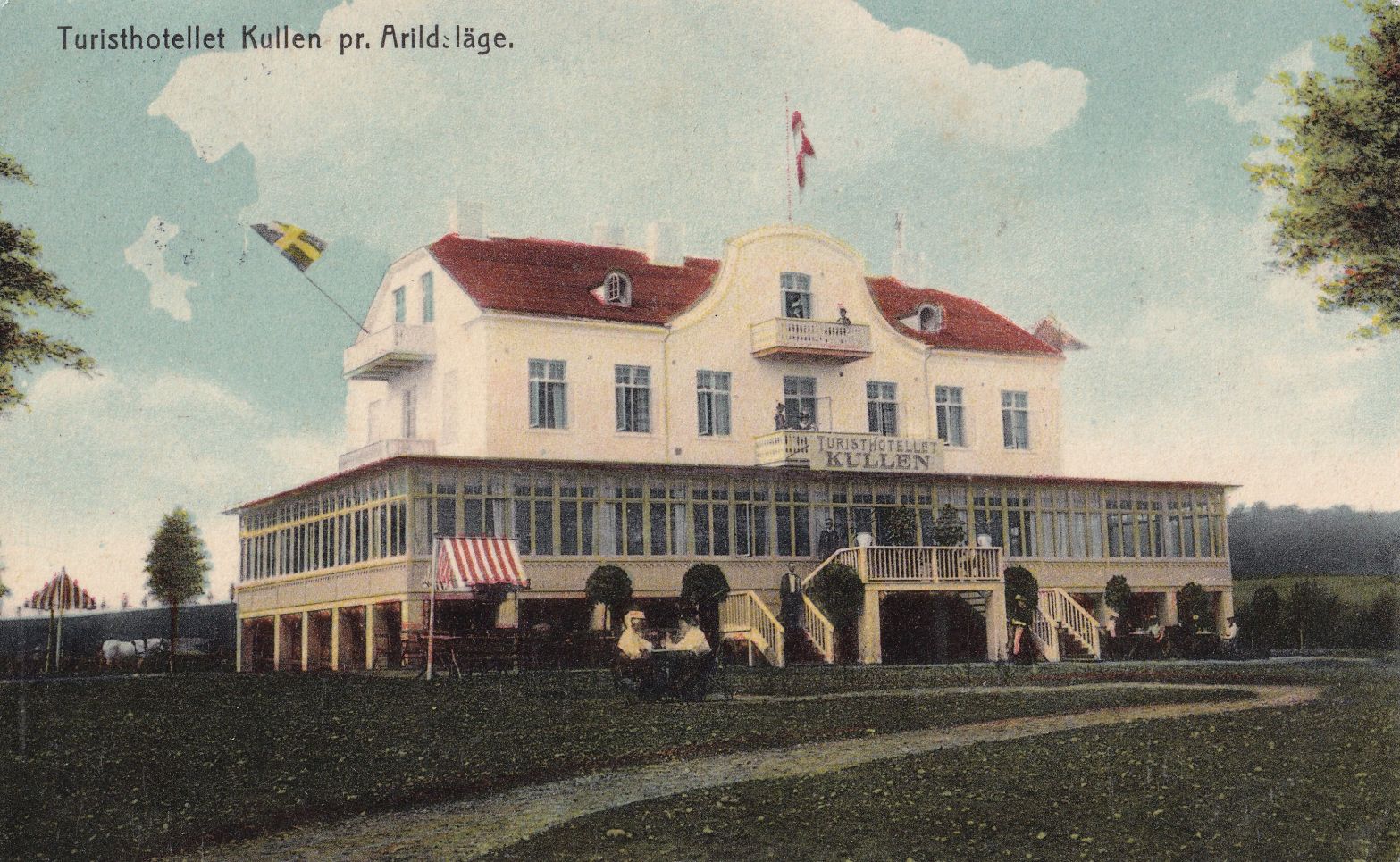 Turisthotellet Kullen Den 31 maj 1908 invigdes Turisthotellet Kullen i Arild. Hotellet hade byggts av disponenten C G Dahn. Vid invigningen var det ett av Kullens finaste och pampigaste hotell, med stora glasverandor och en nyplanterad trädallé som ledde från nuvarande Hagavägen (vid katolska kapellet) till hotellet. Gatan heter fortfarande Turistvägen. Flygfotot nedan är utgivetFortsätt läsa ”Turisthotellet / Semesterhemmet i Arild”