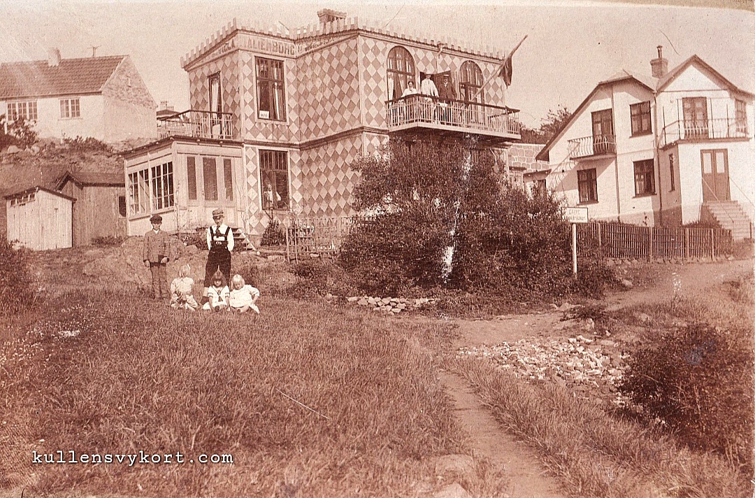 På vykortet ses Pensionat Hyddan som låg i huset på nuvarande Turistvägen 10 i Arild. Det är Peter P. Lundh som tagit fotografiet. Tre barn sitter längs med husväggen och det är gäster både på balkongen och i trädgården. Som framgår av annonsen nedan från 1911 fanns också en stor plan för tennis eller krocketspel.Fortsätt läsa ”Pensionat Hyddan i Arild”