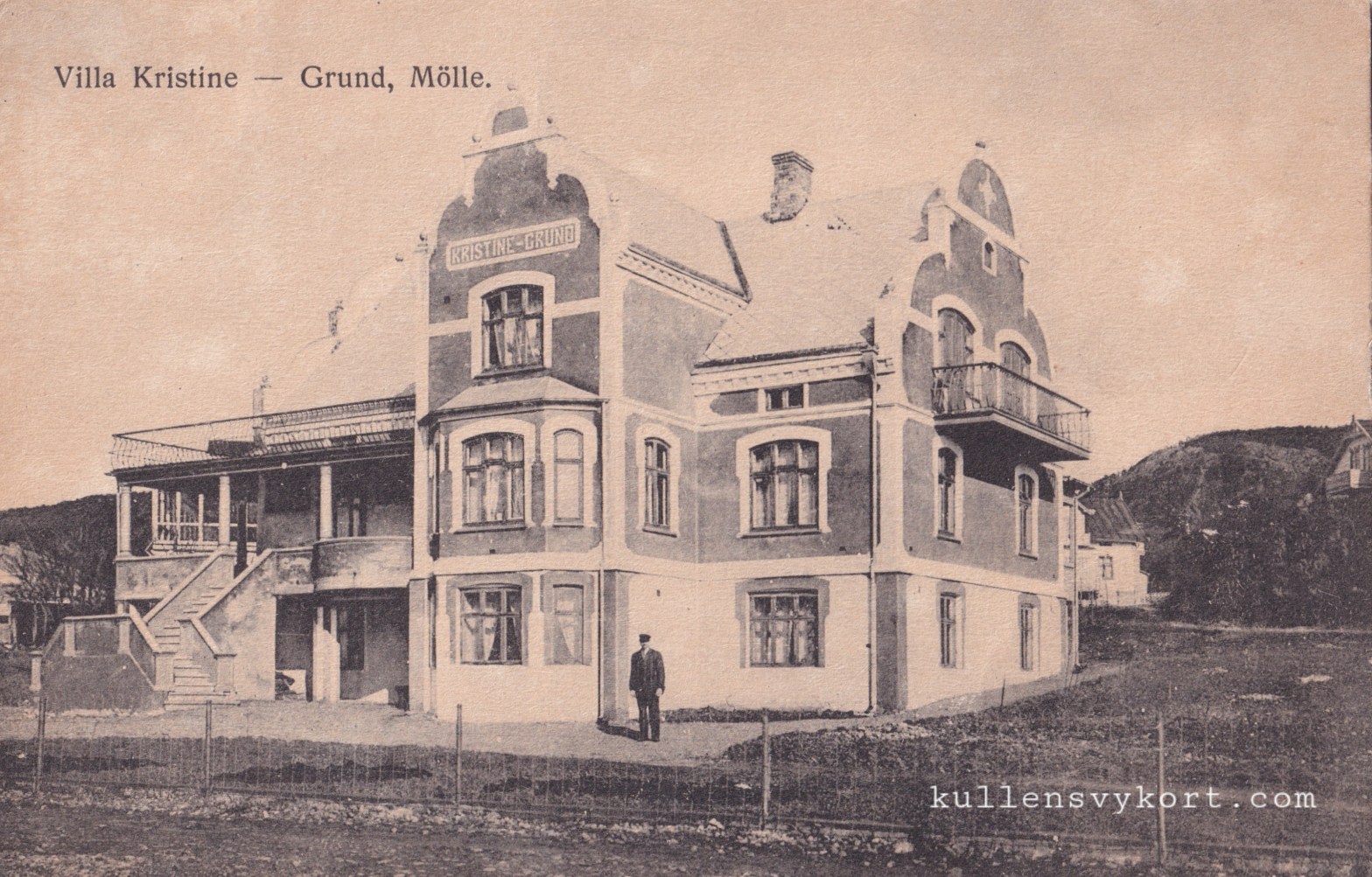 Precis bakom Grand Hotel i Mölle ligger Villa Kristinegrund (eller Kristine-Grund som det står på huset). Det är nog bland Mölles vackraste hus. På flygfotot nedan från 1948 ses Villa Kristinegrund till vänster, bakom Grand Hotel. Huset stod klart 1911 och byggdes av Emma och Nils (Johan) Elfverson. Nils var son till Kristina och JohannesFortsätt läsa ”Villa Kristinegrund i Mölle”